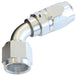 Aeroflow's 500 series cutter fittings are a braised full flow fitting. The billet cutter end separates the wire braid for maximum hose retention, sealing the hose for a second time, which provides a greater sealing area for strength and easier assembly. All angles are mandrel bent, eliminating sharp changes in direction for optimum flow. Aeroflow's 500 Series fittings have a swivel head to allow for easy adjustment making them an excellent choice for the automotive enthusiast for use in fuel systems, cooling systems, vacuum applications and oil systems. Compatible hose: 100 Series S/S braid, 450 Series Lightweight Nylon braid.