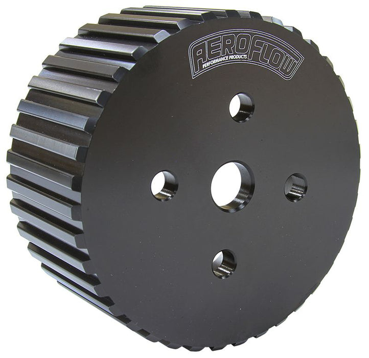 Aeroflow's Industry first 100% complete billet 6061-T6 aluminium Gilmer drive. Hard anodised for case hardness for maximum life of your Gilmer teeth which prevents slippage and torn belts.