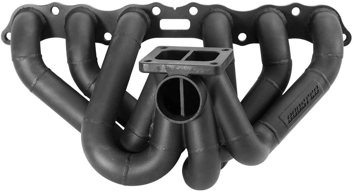 Aeroflow Performance steampipe turbo manifolds are a series of pipes that collect exiting exhaust gases which can be channeled into our merge collector which are perfectly matched to our Boosted range of turbochargers. Our merge collector design allows all pipes to enter at the exact same angle, and merge together at a point in the middle, pointing straight into the turbine. No pipes enter across each other, so airflow is not disrupted, meaning a perfect balance between boost control and flow. With minimal back pressure where the manifold meets the turbo, you can be sure that you're getting the best flow possible from our turbo manifold.